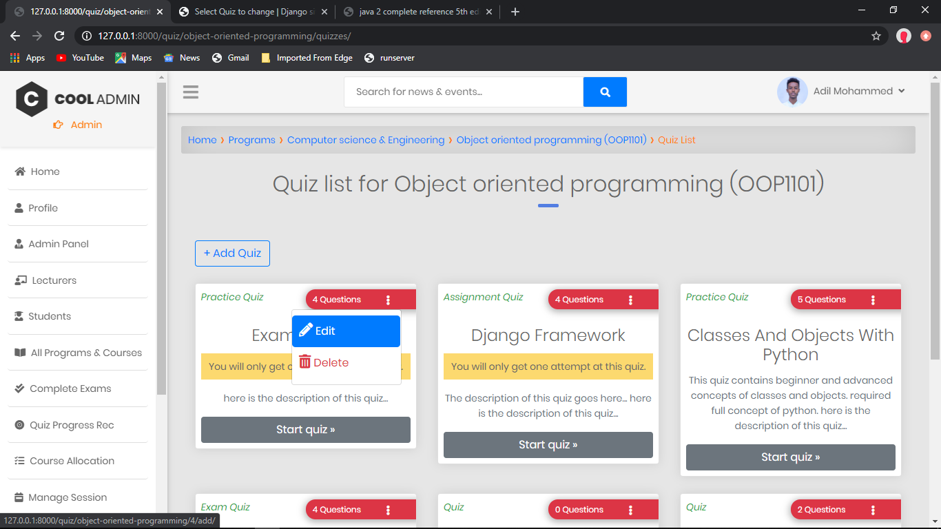 admin-dashboardadmin-panelbootstrap5college-management-systemcourse-management-systemdjangodjango-rest-frameworkgrade-management-systemlearning-management-systemlectureronline-quiz-systemopen-sourcepythonquizzapprelational-databasereport-generatorschool-management-systemstudentsuniversity-management-system